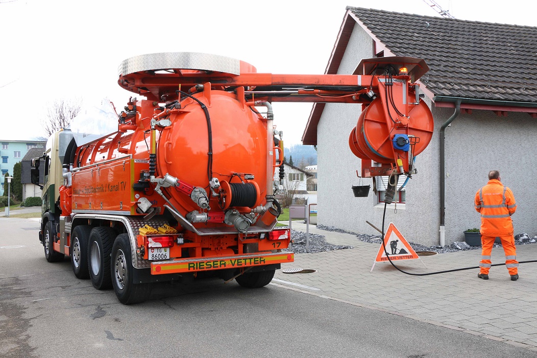 Qu’il s’agisse de vider les égouts, de nettoyer les conduites domestiques bouchées, ou de remplir à nouveau les égouts vidés avec un minimum d'eau, tout peut être fait avec cette construction. Afin de pouvoir effectuer ces travaux de la manière la plus écologique et la plus économique possible, la superstructure est équipée d'un système de récupération en continu des eaux de rinçage des égouts. L'eau aspirée est filtrée en deux étapes et est ensuite à nouveau disponible dans une chambre séparée comme eau de remplissage. De cette manière, les besoins en eau douce précieuse peuvent être réduits au minimum absolu et les eaux usées collectées et filtrées peuvent être réintégrées dans un nouveau cycle de l'eau.