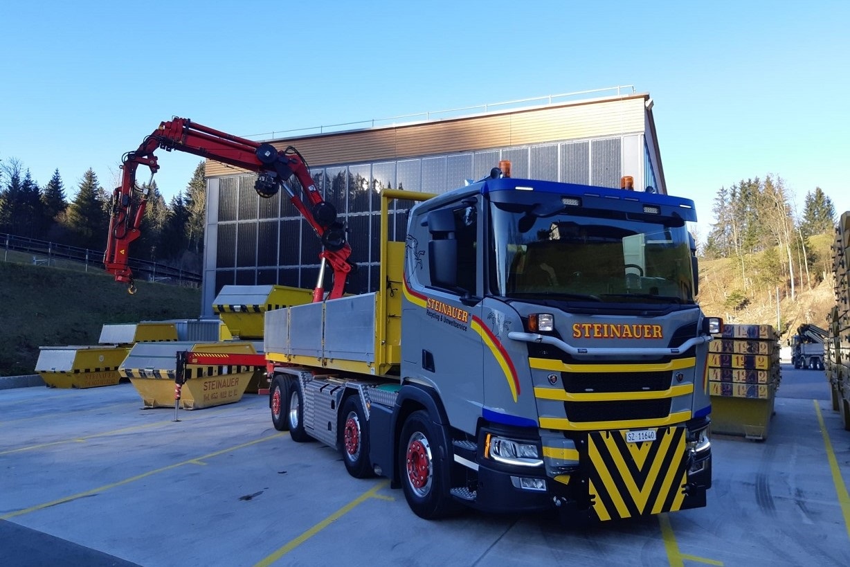 Que ce soit avec un épandeur de sel, avec ou sans chasse-neige, avec un conteneur, un pont ouvert avec grue arrière ou un pont à bâche, il n'y a presque rien que le nouveau Scania ne puisse pas transporter. Outre les véhicules utilitaires lourds, un certain nombre d'autres véhicules sont utilisés par les clients presque tous les jours. Du petit Welaki à la grande benne à 5 essieux d'un volume de chargement allant jusqu'à 16 m3, des tracteurs 6x4 avec diverses semi-remorques ou des véhicules à grue à 4 ou 5 essieux. Le terme « impossible » n'existe pas chez Steinauer AG Recycling & Umweltservice.