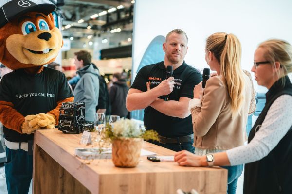 Le roi de la lutte Matthias Glarner chez Daimler Truck Schweiz AG à l'exposition